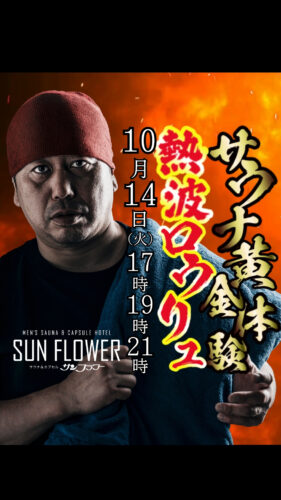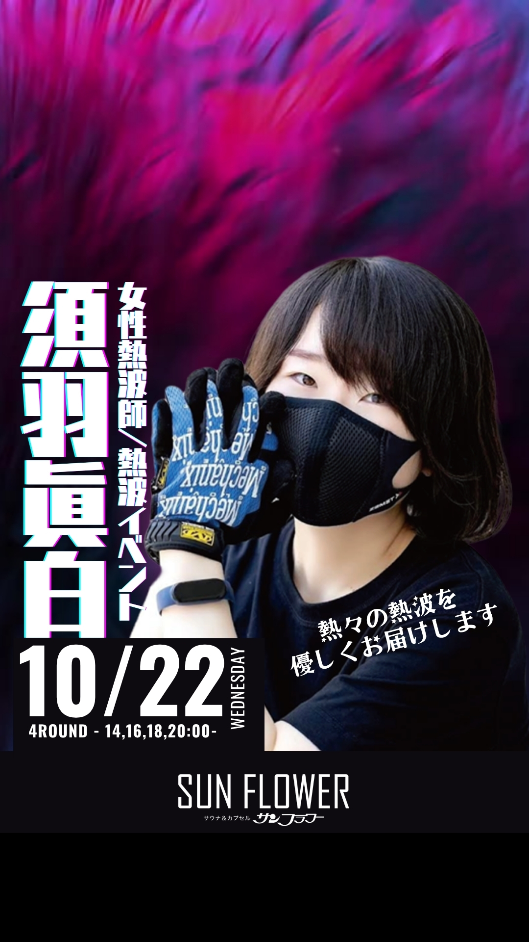 2025-09-30 熱波情報 10月の熱波イベント 10月のイベント情報です! 暑さに負けるな! 皆様、ぜひ、ご来店ください 10月6日(月)有村昆熱波師 10月14日(火 )井上勝正熱波師 10月2022(水) 須羽眞白熱波師 10月29日(水 )井上勝正熱波師 https://www.sunflower-capsule.com/wp-content/uploads/2025/09/mp4.mp4 < >